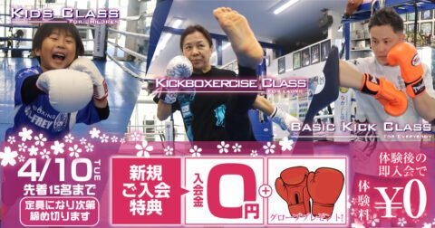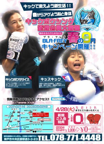 キックボクシングBLA-FREY(ブラ・フレイ)春の入会キャンペーン開催いたします。